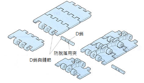 - 採用塊狀結(jié)構(gòu),鏈環(huán)寬度小。適用於小件輸送