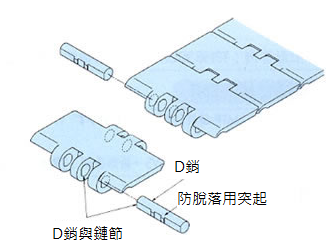 - 節(jié)距小於塑膠頂板鏈條??蓽p小鏈輪外徑,節(jié)省轉(zhuǎn)接部的空間